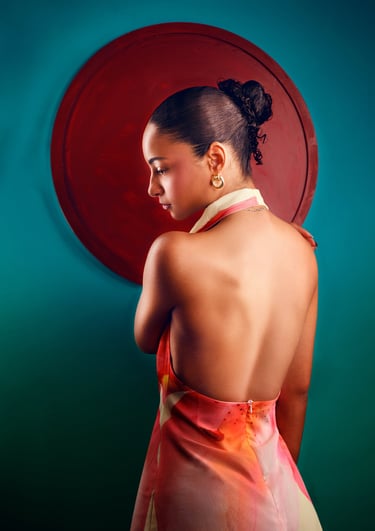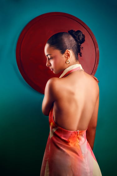 High-end, low-volume, meticulously crafted images. This is for individuals leaving a mark. It evokes something enduring and significant. Three outfits. Pre-shoot concepting. Editorial-grade retouching. Jewelry styling. Immersive projection for story and scale. Many find 12 photos perfect for print, social media, and anniversaries. It's the right amount to reveal your elegance.
